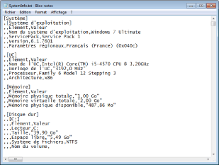 Le fichier texte des informations d'environnement obtenues s'appelle toujours "SystemInfo.txt".
