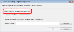 Si la version de Desktop installée sur l'ordinateur de destination est antérieure à la version de Desktop installée sur l'ordinateur source, vous ne pouvez pas importer les paramètres.