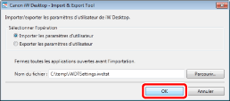 Selon votre environnement, il peut être nécessaire de redémarrer l'ordinateur après l'importation des paramètres.