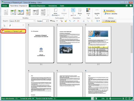 Lors de l'exportation au format PDF, les paramètres de mise en page et le côté vierge d'une impression recto verso ou d'une impression de brochure configurés dans Desktop Editor (par exemple [Format de sortie], [Orientation du papier en sortie], [Mise en page] et [Agrandir/Réduire la page d'origine]) sont appliqués au document PDF. Si les éléments suivants doivent être imprimés, ils figurent également dans le document PDF.