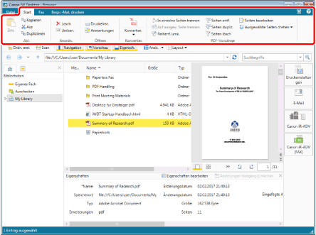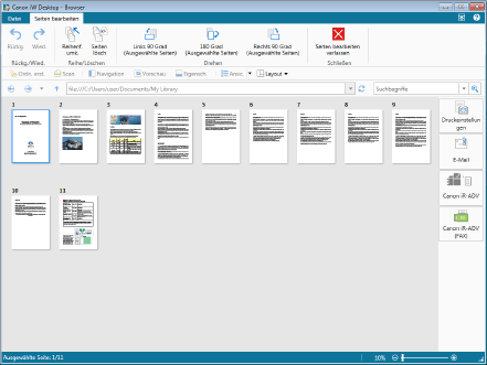 Im Modus "Seiten bearbeiten" wird das Vorschaufenster größer angezeigt und PDF-Dokumente können bearbeitet werden.