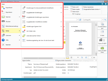 Das [Datei]-Menü enthält die Funktionen im Zusammenhang mit dem Desktop Browser wie z. B. Drucken und Scannen sowie Elemente für die Konfiguration des gesamten Desktops.