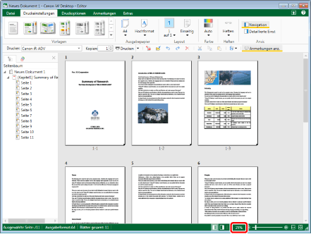 Sie können den Vergrößerungsfaktor für die im Arbeitsfenster angezeigten Seiten ändern.