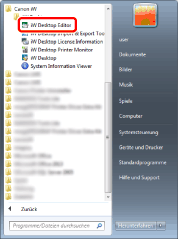 Unter Windows 10 wählen Sie im Menü [Start] > [Alle Apps] > [Canon iW] > [iW Desktop Editor]. Desktop Editor wird gestartet.