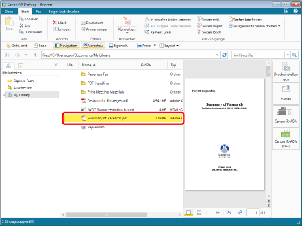 Wenn Sie für 11 oder mehr ausgewählte Dokumente auf [Öffnen] oder [Anmerkungen] klicken, wird nur das erste Dokument, das ganz oben in der Liste im Dateilistenfenster angezeigt wird, in Desktop Editor geöffnet.