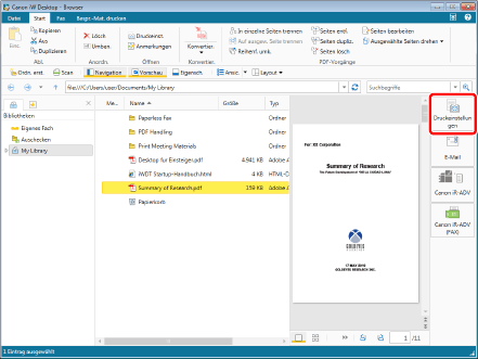Wenn Sie das Kontrollkästchen [Originaldokument unter Canon Desktop Document speichern] in [Systemeinstellungen] aktivieren, wird das Originaldokument als IWB-Dokument gespeichert.