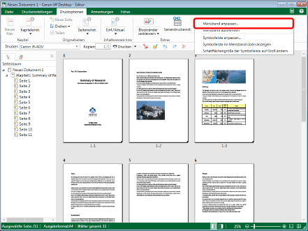 Je nach Fenstergröße und Anzahl der Befehle im Menüband, werden möglicherweise nicht alle Befehle auf dem Menüband angezeigt. In diesem Fall werden die Befehle als Schaltflächen in Gruppen angezeigt. Wenn Sie auf eine Schaltfläche klicken, werden die Befehle, die zu dieser Gruppe gehören, in einer Pulldown-Liste angezeigt, in der Sie die Befehle anklicken können.