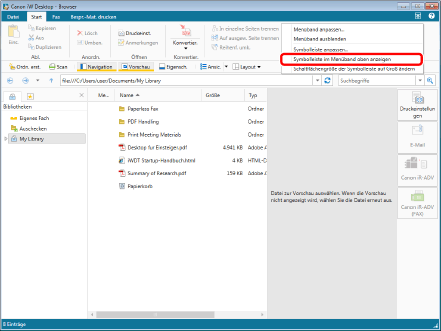 Klicken Sie mit der rechten Maustaste auf das Menüband oder die Symbolleiste, und wählen Sie [Symbolleiste im Menüband oben anzeigen].