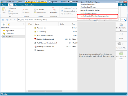 In diesem Abschnitt wird beschrieben, wie Sie Symbolleisten unter das Menüband verschieben.