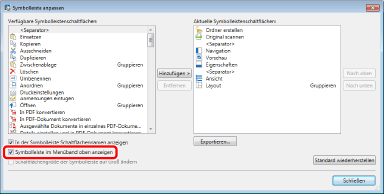 Verwenden des [Symbolleiste anpassen]-Dialogfelds