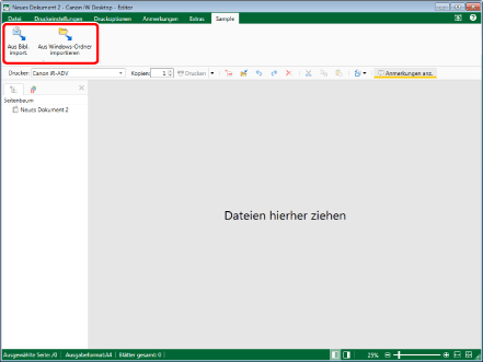 Sie können alle Dokumente/Ordner/Seiten, die sich mit dem verwendeten Computer drucken lassen, per Drag & Drop ablegen, um ein neues IWB-Dokument zu erstellen. Jedoch kann das Hinzufügen von Dokumenten aus bestimmten Anwendungen einen Importfehler ergeben.