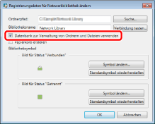 Das [Registrierungsdaten für Netzwerkbibliothek ändern]-Dialogfeld wird angezeigt.