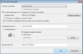 Wenn Sie den Namen des im Druckerausgabesymbol registrierten Druckers im Druckereigenschaften-Bildschirm von Windows ändern, können Sie keine Dokumente über das Druckerausgabesymbol drucken. Wenn Sie den Druckernamen ändern, wählen Sie den Drucker erneut in den Einstellungen des Druckerausgabesymbols.