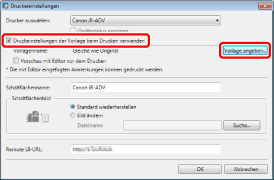 [Druckeinstellungen der Vorlage beim Drucken verwenden]