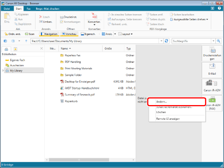 [Dokument mit zugeordneter Anwendung per Fax senden]