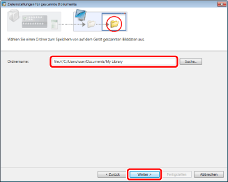 Legt das Adressformat für den Zielordner der gescannten Dokumente fest.