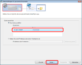 Wählen Sie ein Gerät aus, indem Sie die IP-Adresse oder den Hostnamen eingeben.