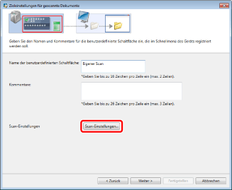 Die Elemente, die im Gerät konfiguriert werden können und häufig verwendet werden, werden im Dialogfeld [Scan-Einstellungen] als Einstellungselemente angezeigt.