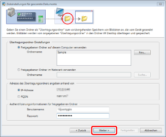 Geben Sie einen Ordner an, in dem gescannte Dokumente abgelegt werden sollen, bevor sie an den Zielordner übertragen werden.