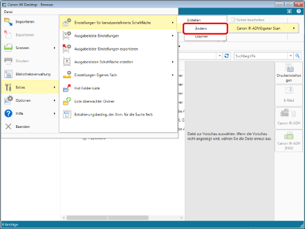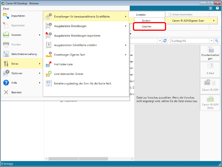 Die registrierte benutzerdefinierte Schaltfläche wird aus Desktop Browser gelöscht, aber die Schaltfläche für das Schnellmenü des imageRUNNER ADVANCE-Geräts wird nicht gelöscht.