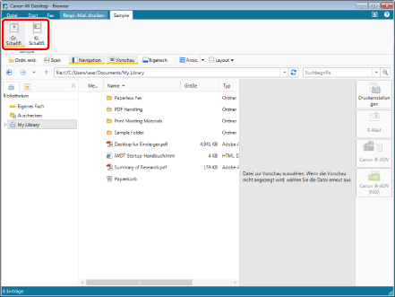 Dieser Vorgang kann auch mithilfe der Schaltflächen in der Symbolleiste durchgeführt werden. Wenn die Schaltflächen nicht in der Symbolleiste von Desktop Browser angezeigt werden, finden Sie hier, wie Sie sie anzeigen: