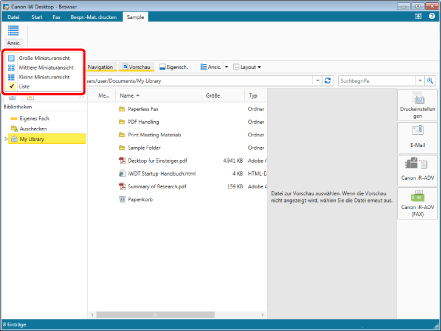 Im Dateilistenfenster können Sie die Dokumentansichtsmethode auswählen: Miniaturansicht oder Listenansicht.