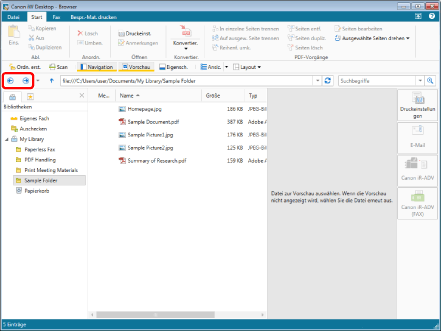 Sie können die Maus aus einem Bereich des Dateilistenfensters, in dem nichts angezeigt wird, ziehen, um mehrere Dokumente/Ordner auszuwählen. Die Taste [Umschalt] auf der Tastatur kann jedoch während dieses Vorgangs nicht verwendet werden.