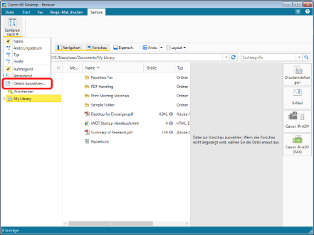 (Sortieren nach) und wählen Sie anschließend in der Pulldown-Liste [Details auswählen].