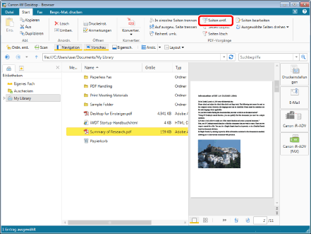 Wenn Sie sich in der Miniaturansicht befinden, können Sie mehrere Seiten auswählen, indem Sie auf diese klicken, während Sie die Tasten [Umschalt] oder [Strg] gedrückt halten.