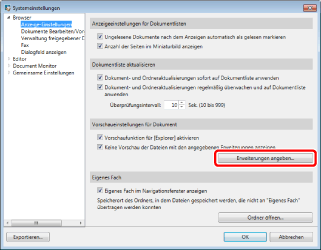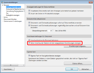 Um die Einstellungen rückgängig zu machen, sodass alle Dokumenttypen in der Vorschau angezeigt werden, deaktivieren Sie das Kontrollkästchen [Keine Vorschau der Dateien mit den angegebenen Erweiterungen anzeigen].