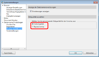 [Systemeinstellungen] > [Gemeinsame Einstellungen] > [Anzeige-Einstellungen] > [Wählen Sie die anzuzeigende Bildqualität für die Vorschau aus]