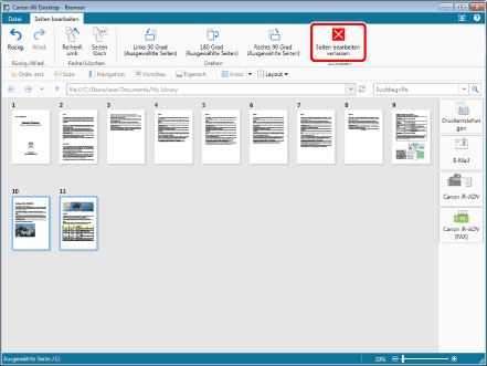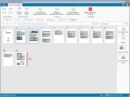 Sie können mehrere Seiten auswählen, indem Sie auf diese klicken und gleichzeitig die [Umschalt]- oder [Strg]-Taste auf der Tastatur gedrückt halten.