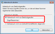 Wenn auf dem Gerät kein Zugriffsnummer-Management durchgeführt wird, wählen Sie [Adressbuch wird von Gerät abgerufen] und klicken Sie auf [OK], ohne eine Zugriffsnummer einzugeben.