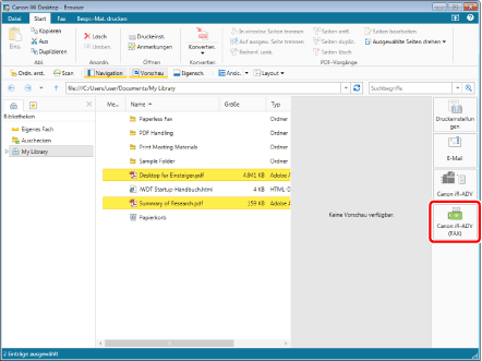Wenn Sie mehrere Dokumente auswählen, wird das Dialogfeld [Einstellungen für Faxversand] für das nächste Dokument angezeigt. Wiederholen Sie in diesem Fall die Schritte 3 bis 9.