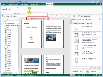 (Fax) und wählen Sie [Faxversanddialog anzeigen].