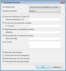 Wählen Sie dieses Kontrollkästchen, um den Abteilungsnamen des Absenders einzubeziehen, und geben Sie ihn dann in das Feld [Abteilung] ein.