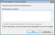 Der eingegebene Kommentar kann als Teil der Versionsinformationen im [Dokumentversionsliste]-Dialogfeld geprüft werden.