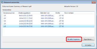Wenn Sie die Versionsliste eines ausgecheckten Dokuments anzeigen und die neueste sowie zweitneueste Versionsnummer auswählen, können Sie [Als aktiv kopieren] nicht verwenden.