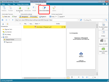 Wählen Sie die Document Server Bibliothek oder SharePoint Serverbibliothek im Navigationsfenster aus.