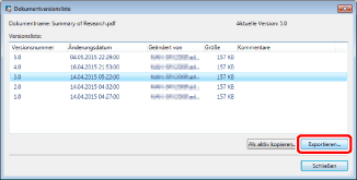 Wählen Sie die zu speichernde Version aus und klicken Sie auf [Exportieren].