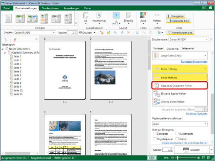 (Heften) und wählen Sie [Gesamtes Dokument heften] aus.