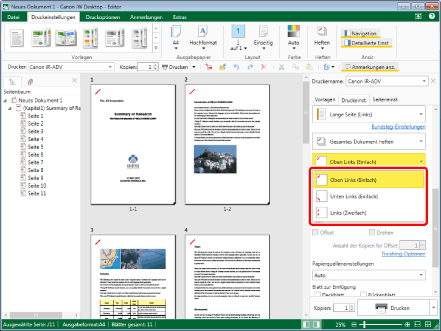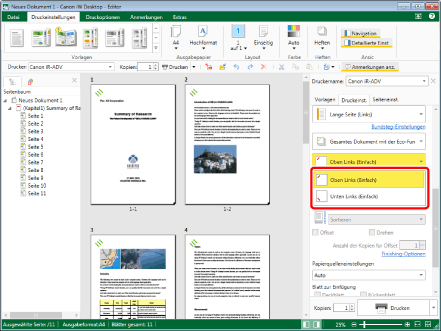 (Heftposition) und wählen Sie die Position von Eco (Heftfrei) aus.
