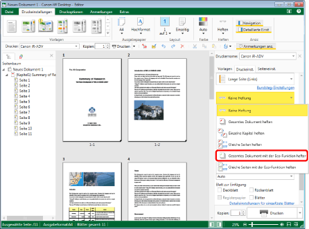 (Heften) und wählen Sie [Gesamtes Dokument mit der Eco-Funktion heften] aus.