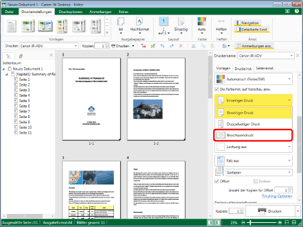 Ermöglicht die Auswahl des Broschürendrucks.