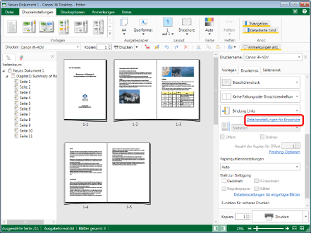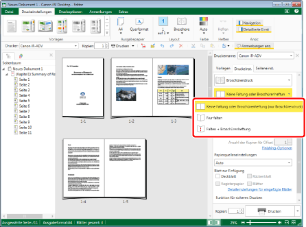 Führt den Broschürendruck für alle Seiten auf einmal durch.