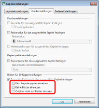Aktivieren Sie dieses Kontrollkästchen, wenn Sie kein Registerpapier einfügen möchten.
