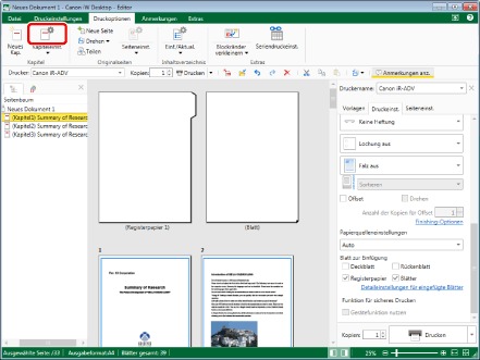Nähere Informationen zum Konfigurieren von Einfügeblättern und Registerpapier für das gesamte Dokument finden Sie hier: