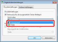 Wenn der unter [Drucker] festgelegte Canon-Drucker Farbdruck nicht unterstützt, können Sie den Farbmodus auf Seitenbasis nicht festlegen.