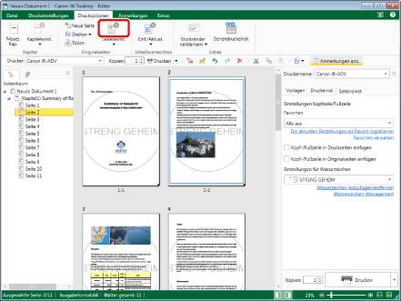 Sie können auch auf der Registerkarte [Seitenbaum] im Navigationsfenster mit der rechten Maustaste auf die Seite klicken, deren Einstellungen geändert werden sollen, und [Keine Wasserzeichen in ausgewählte Seiten einfügen] auswählen.