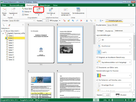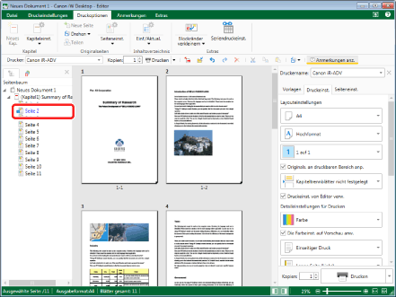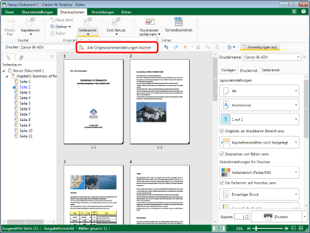 Sie können auch auf der Registerkarte [Seitenbaum] im Navigationsfenster mit der rechten Maustaste auf die Seite klicken, deren Einstellungen geändert werden sollen, und [Einstellungen löschen] unter [Farbmodus für Originalseiten] auswählen.
